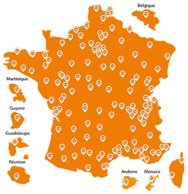 - Plus de 130 points de distribution et agences sur tout le territoire national, en Belgique, dans les DOM et dans les principautés d’Andorre et de Monaco
